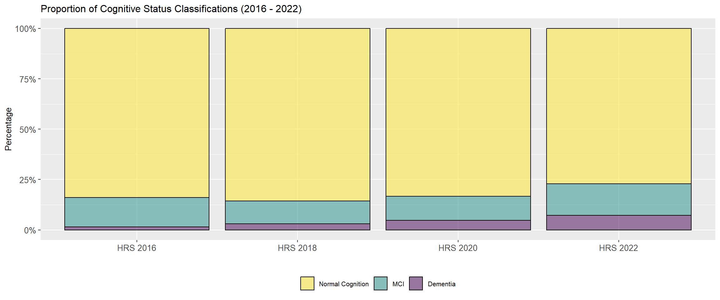 labs(title = "Proportion of Cognitive Status Classifications (2016 - 2022)",