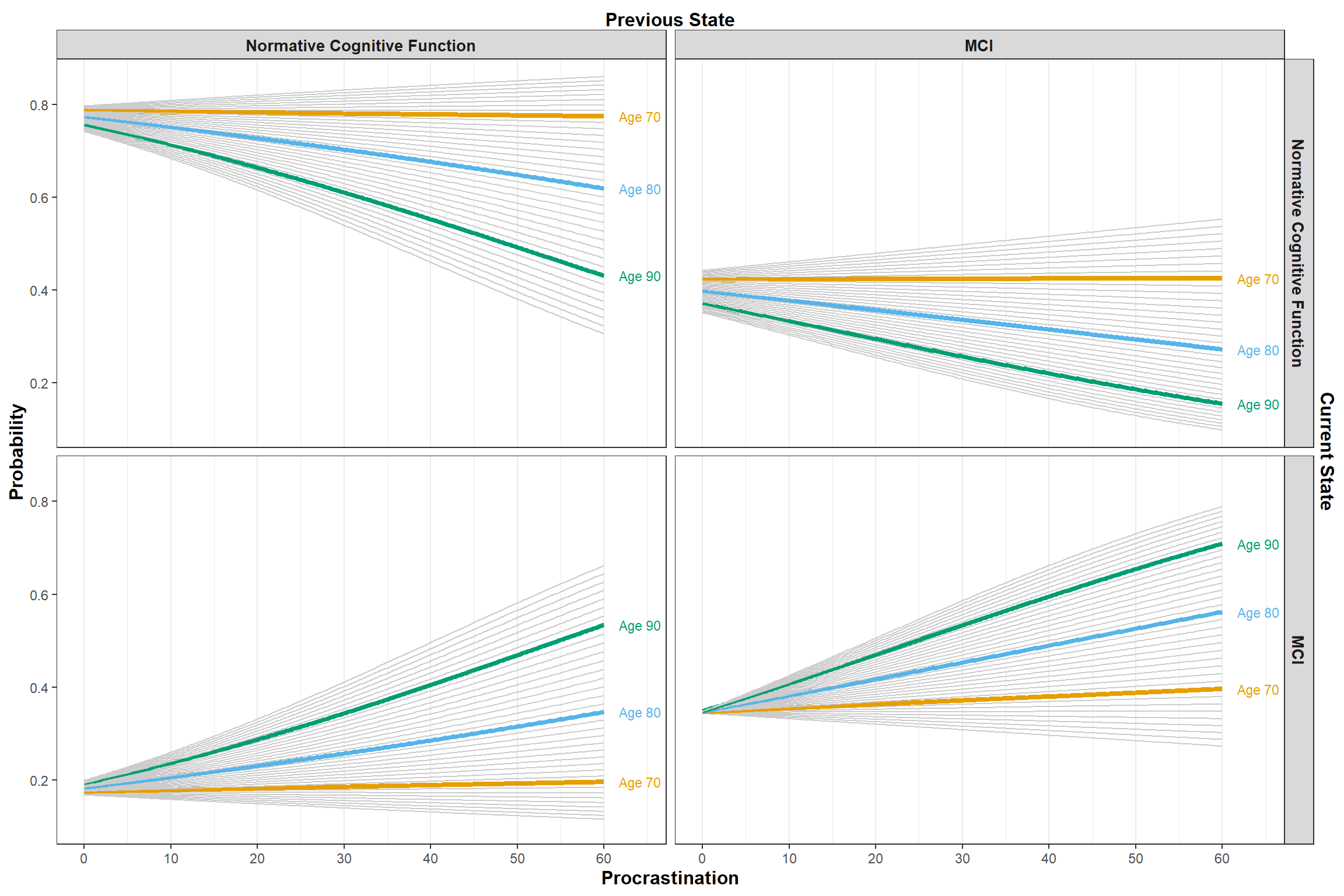 Finally, (@fig-interaction-age-predictions) shows the the predicted transition probabilities for different age cohorts.