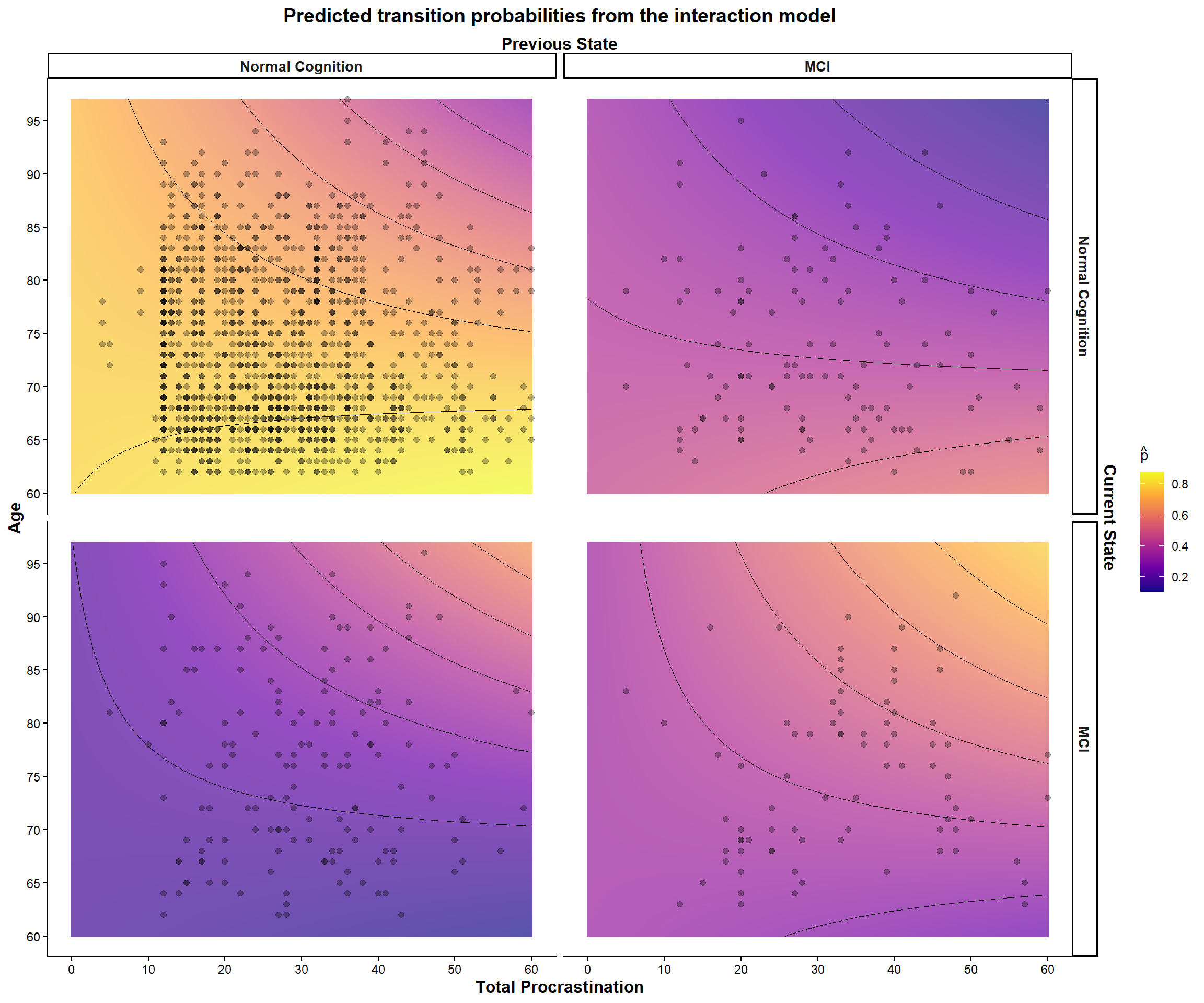 # title = "Predicted transition probabilities for different age cohorts",