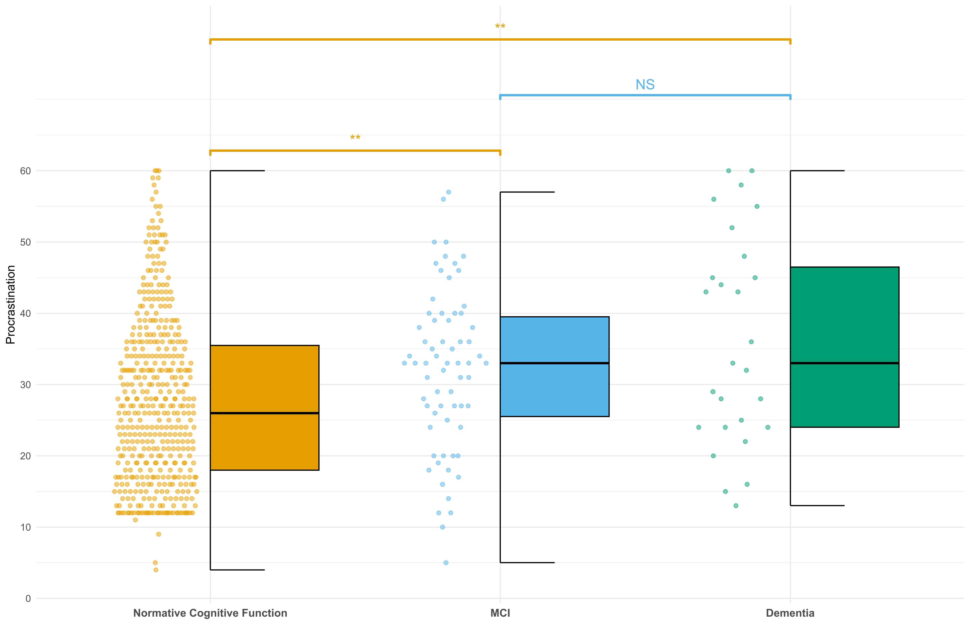 Group differences in 2020 procrastination scores according to cognitive status.